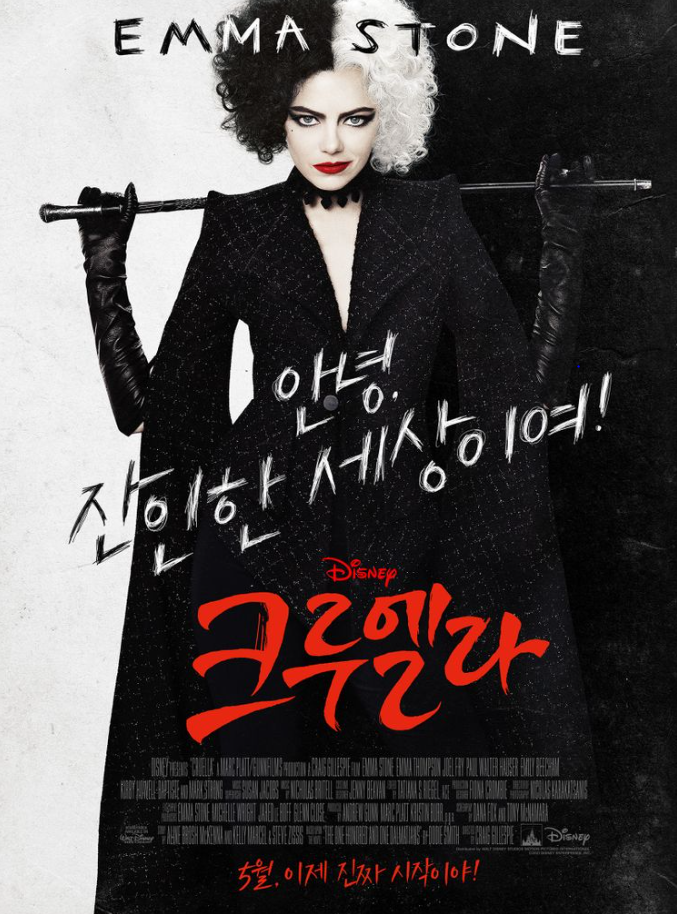 이 영화는 원작 '101마리의 달마시안' 에서 악녀 빌런 ' 크루엘라 드 빌'을 내세워서 새롭게 재해석한 작품인데, 영화 <크루엘라> 는 단순히 '크루엘라" 캐릭터를 빌런 역할로 그리지 않았다. '크루엘라' 의 빌런 캐릭터로서의 성향을 패션에 대한 집착과 광기로 접근하여 해석한 시각은 상당한 신선함을 준다. 충분히 앞에서 서사가 부여되어서 그런지는 몰라도 패션에 대한 집착을 통해 악행을 저지른 크루엘라의 행동들은 왠지 모르게 악해 보이지 않는다. 과격하고 솔직한 성격이지만 당당하고 명분있는 그녀의 행동에 우리는 악하다는 비난 보다는 공감과 이해를 할 수 밖에 없었고, 크루엘라 캐릭터 본래의 성격을 끝까지 잃지 않았다는 전개 또한 맘에 들었다. 또한 패션 디자이너로서 크루엘라의 파격적이고 화려한 의상들이 한눈에 시선을 집중시켰고, 카메라 무빙역시 일반적인 기법으로 찍지 않고 현란한 방식들을 사용하여 마치 패션쇼 런웨이를 보는 듯한 기분을 불러 일으켜 입체감을 보여주었다.